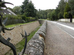 Les douves, remises en état en 2005, et la grille du château se situent rue du Clos Berger.